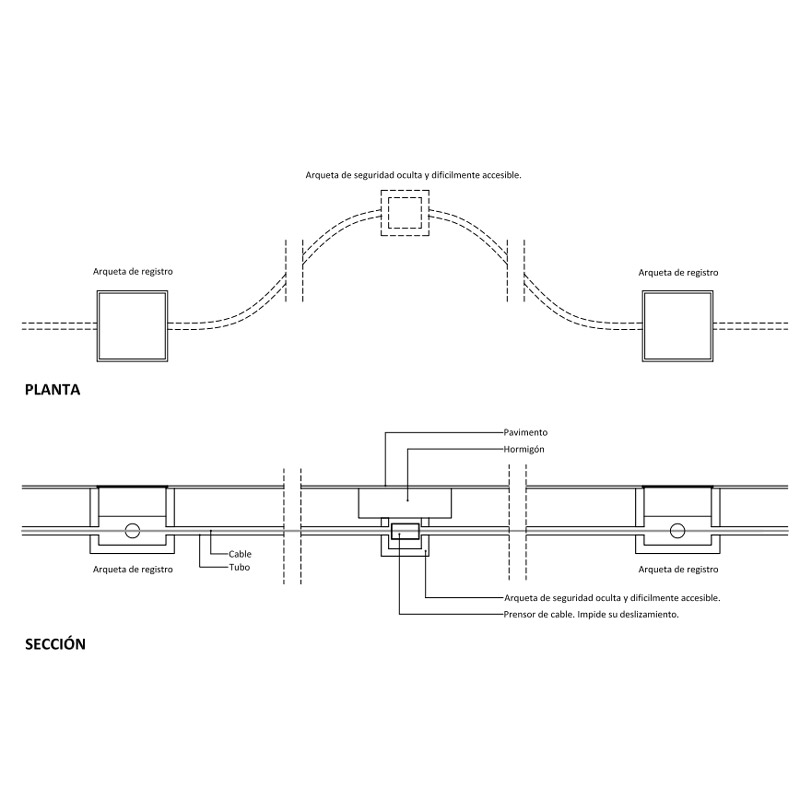Es importante empezar diciendo que siempre que haya arqueta ésta debe ir al menos ciega, es decir, que aunque se levantara la tapa de fundición se debe de impedir el acceso a ella y consecuentemente al cable. De nada serviría coligar el sistema de protección en la farola si dejamos que al ladrón que pueda cortar el cable desde la arqueta para terminar cometiendo el hurto.